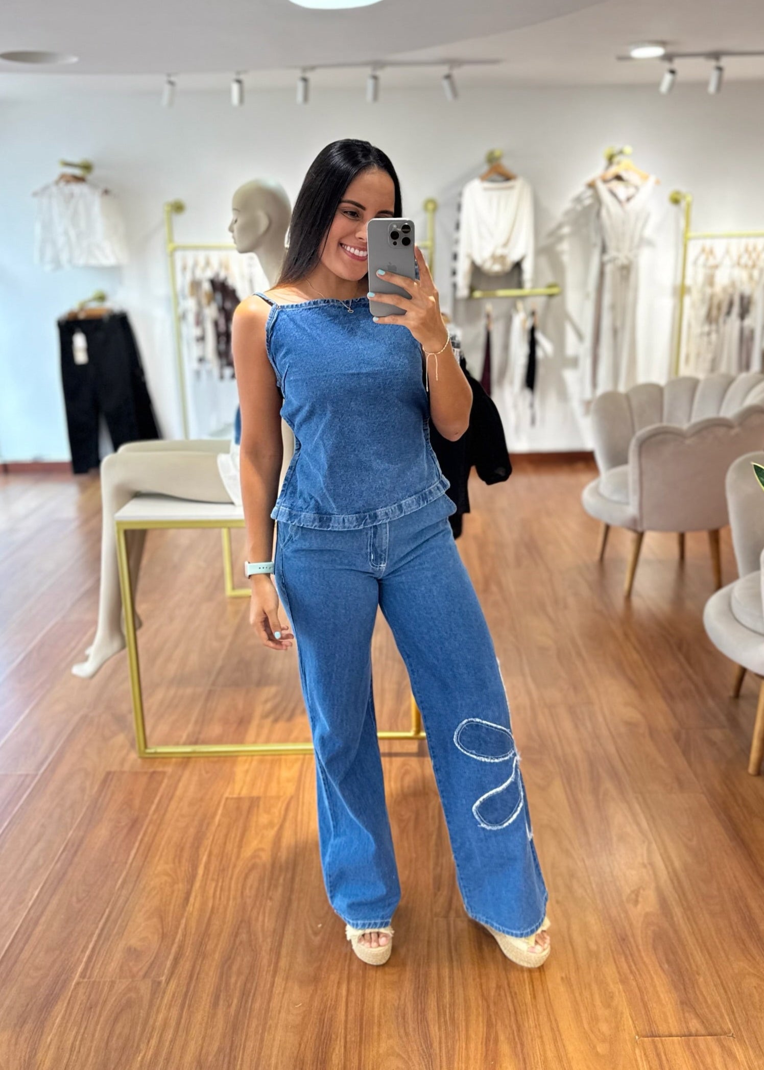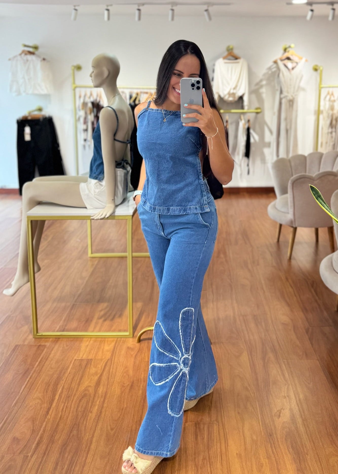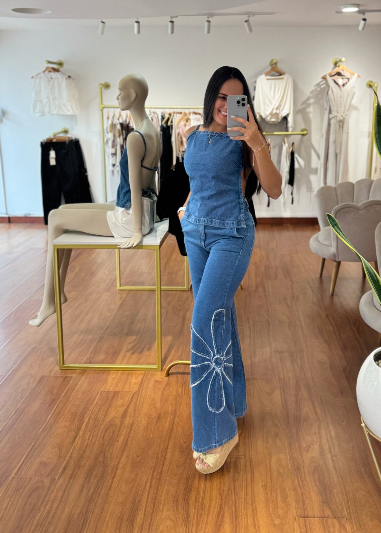 Este jean de corte wide leg es la mezcla perfecta entre comodidad y estilo. Su diseño en denim azul clásico destaca por una divertida aplicación de flor en una pierna, aportando un aire fresco y original a tu look. Tiro alto, ajuste relajado y tejido suave que estiliza sin sacrificar comodidad. Ideal para combinar con tops ajustados o camisas oversize. ¡Una prenda que le da personalidad a cualquier outfit!